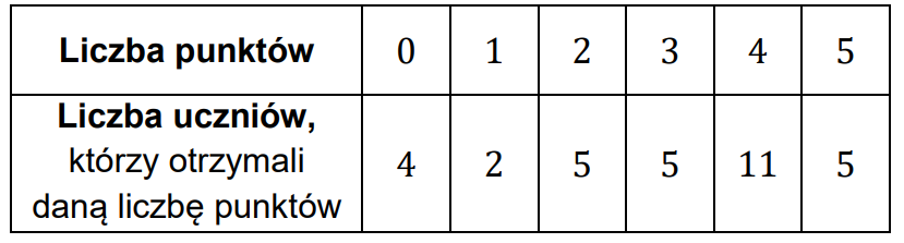W tabeli zestawiono liczbę punktów uzyskanych przez 32 uczniów pewnej klasy za rozwiązanie jednego z zadań ze sprawdzianu z matematyki.