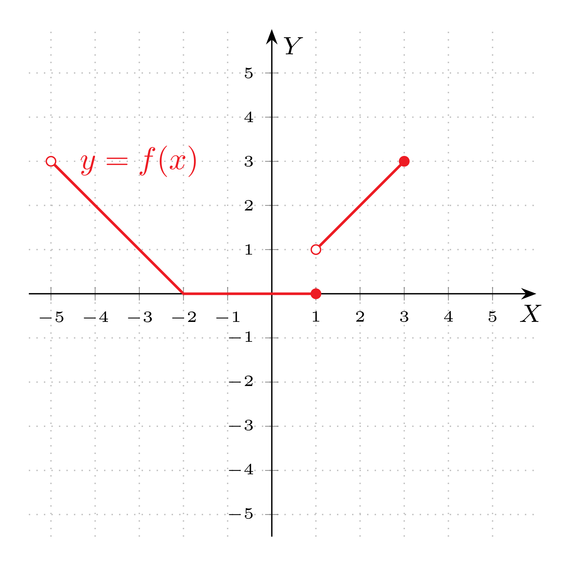 funkcja-jest-okreslona-nastepujacofxbegincases-x-2andamptextdla-xin-5-2-0-andamp-2895Zadaniafunkcja-jest-okreslona-nastepujacofxbegincases-x-2andamptextdla-xin-5-2-0-andamp-2895ZadanieFunkcja jest określona następująco:Wykres funkcji przedstawiono w kartezjańskim układzie współrzędnych na rysunku poniżej. Wyznacz dziedzinę funkcji . Wyznacz zbiór wartości funkcji . Wyznacz miejsca zerowe funkcji . Wyznacz zbiór rozwiązań nierówności .RozwiązanieO zadaniuMatura(Dodatkowa)czerwiec 2025Zad. 10Poziom podstawowy Formuła 2023 JJarosław Piszczek@adminPoziom:Szkoła średniaFormat rozwiązania:LaTeX\LaTeXLATEXTypy zadań:55Typ zadaniaFunkcje: Odczytywanie własności funkcji z wykresu (bez wzoru) (Matura - poziom podstawowy) Dziedzina:DziedzinaAnaliza matematyczna Definicje:DefinicjaDziedzina funkcji DefinicjaWykres funkcji DefinicjaZbiór wartości funkcji DefinicjaMiejsce zerowe funkcji DefinicjaNierówność DefinicjaŁamana