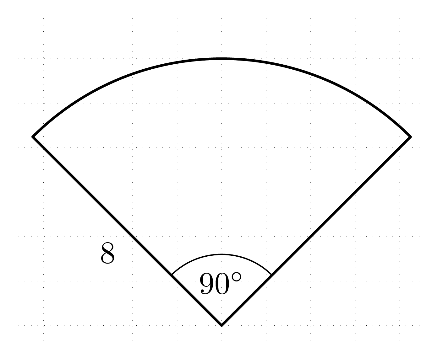 Powierzchnia boczna stożka po rozwinięciu na płaszczyznę jest wycinkiem koła o promieniu i kącie środkowym (zobacz rysunek). Oblicz objętość tego stożka.