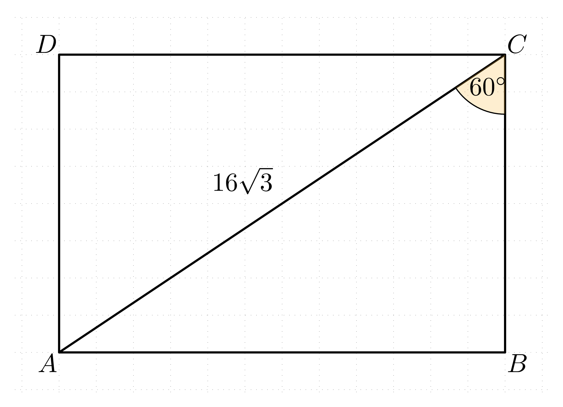 Powierzchnię boczną graniastosłupa prawidłowego czworokątnego rozcięto wzdłuż krawędzi bocznej graniastosłupa i rozłożono na płaszczyźnie. Otrzymano w ten sposób prostokąt , w którym bok odpowiada krawędzi rozcięcia (wysokości graniastosłupa). Przekątna tego prostokąta ma długość i tworzy z bokiem kąt o mierze (zobacz rysunek).