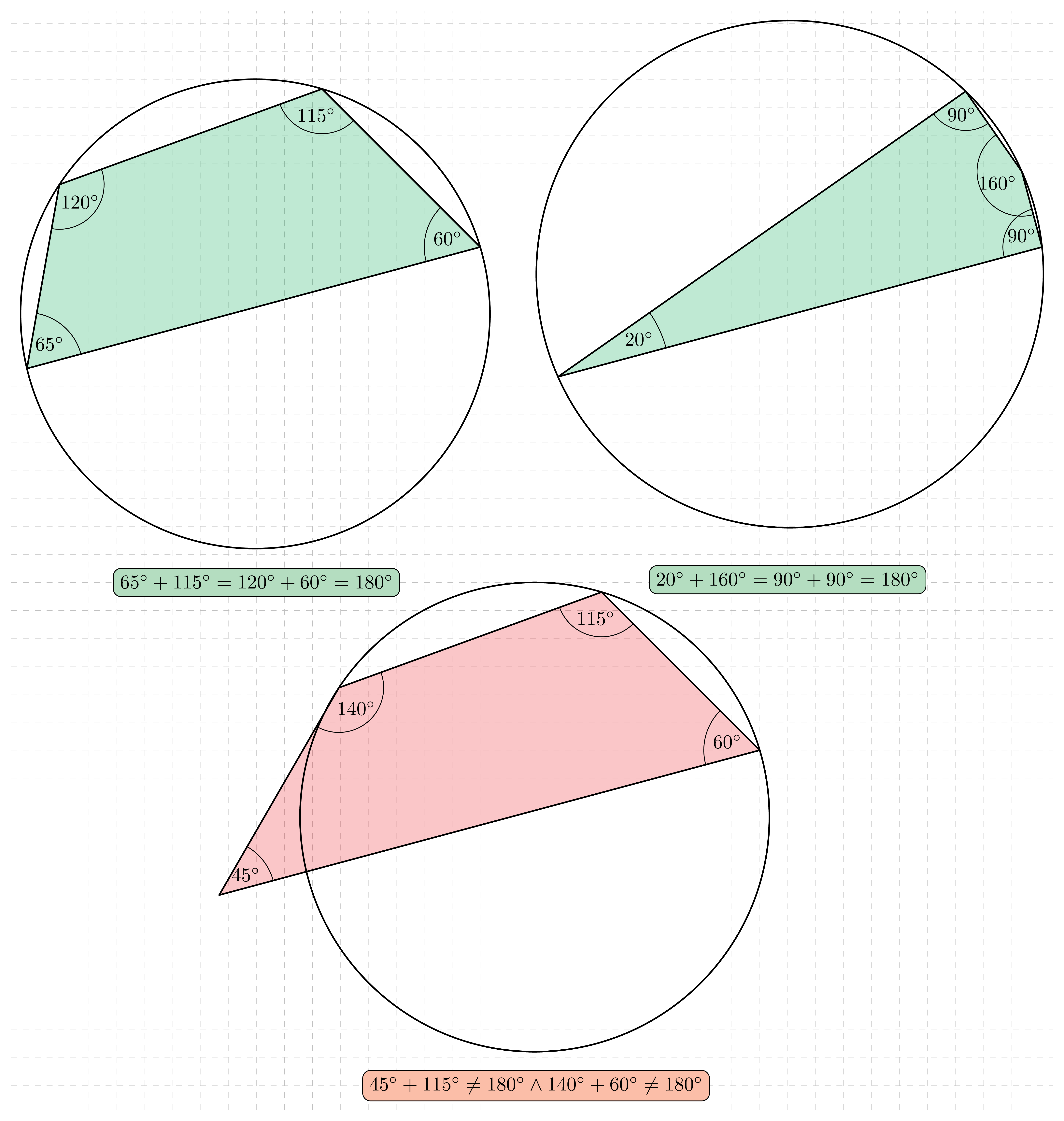 Na czworokącie da się opisać okrąg wtedy i tylko wtedy, gdy sumy miar jego przeciwległych kątów są równe 180^\circ .