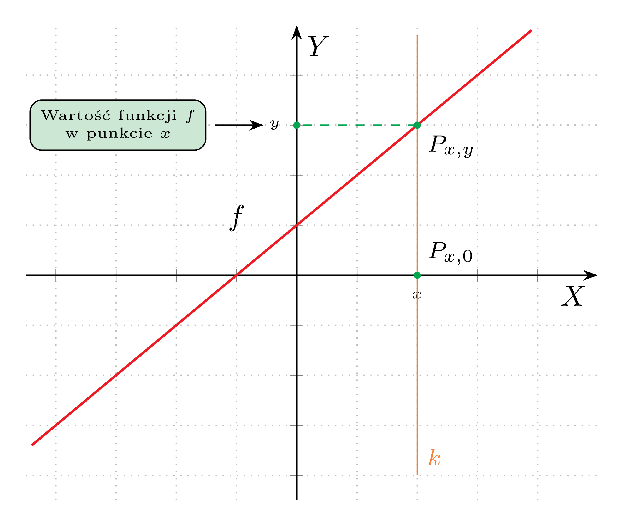 odnaleźć punkt P_{x,y} przecięcia prostej k z wykresem funkcji f.
