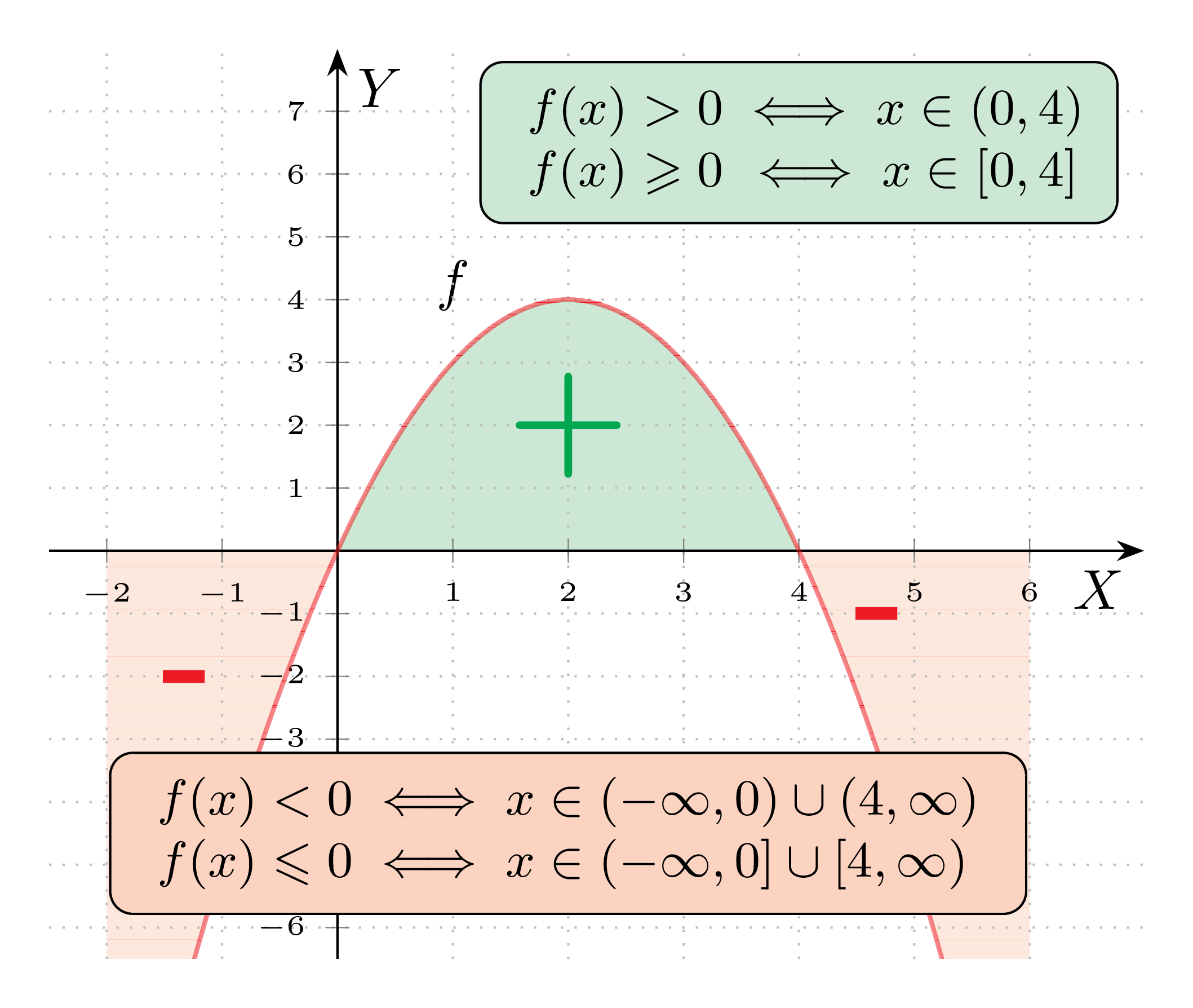 Aby zaleźć argumenty, dla których funkcja jest dodatnia / ujemna / nieujemna / niedodatnia należy rozwiązać odpowiednią nierówność: